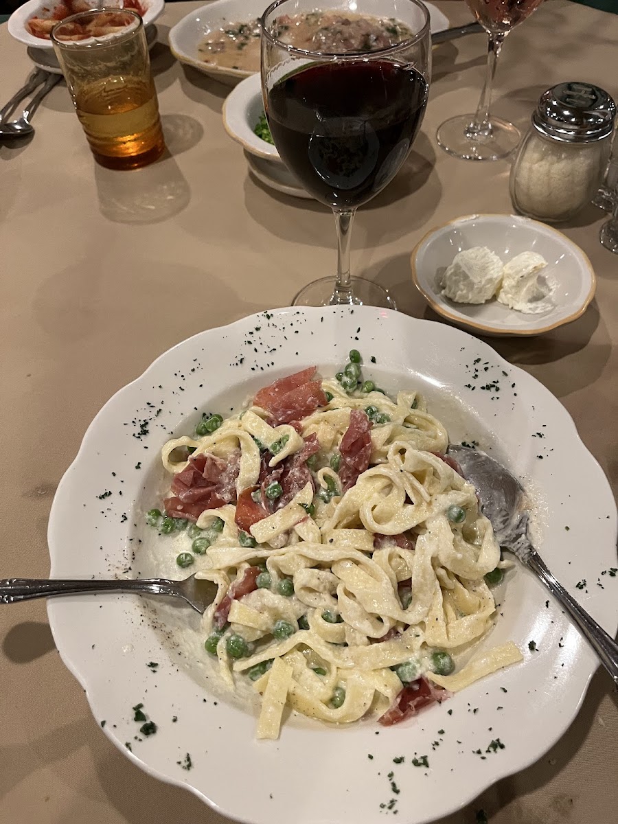 We had the BEST experience. I can't say enough good things about this wonderful old world restaurant. Our meals were tasty and perfect. The service was exemplary. Angela, our server, made a great suggestion of splitting the shrimp and crab pasta meal with my son because it is so huge. That was a great idea and I added a Caesar salad with it. All of the food was fresh and delicious. The pasta is homemade as were the delicious buttery croutons on my salad. The orange roughy is huge even my skeptical father was very impressed. The warm homemade bread is also amazing. We loved the decor saluting our local hometown soldiers. I am so happy that this place is still in business after all of these years. That speaks volumes! Don't be scared of the price range - their prices are in range with every other restaurant serving similar dishes including chains. Just be sure to look at your receipt as parties that are five or larger receive an automatic gratuity on their bill (these girls do a great job and definitely deserve the 20%). Note to the chef - looking forward to when you start making desserts again. I will be making another reservation very soon!